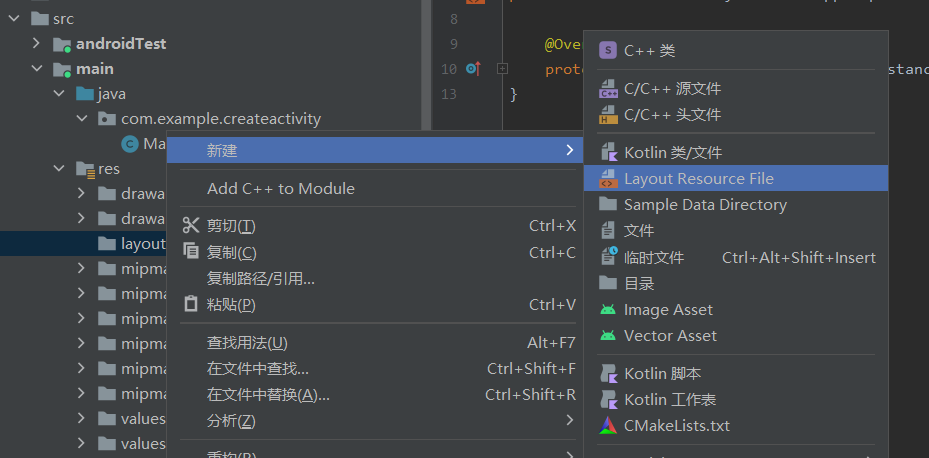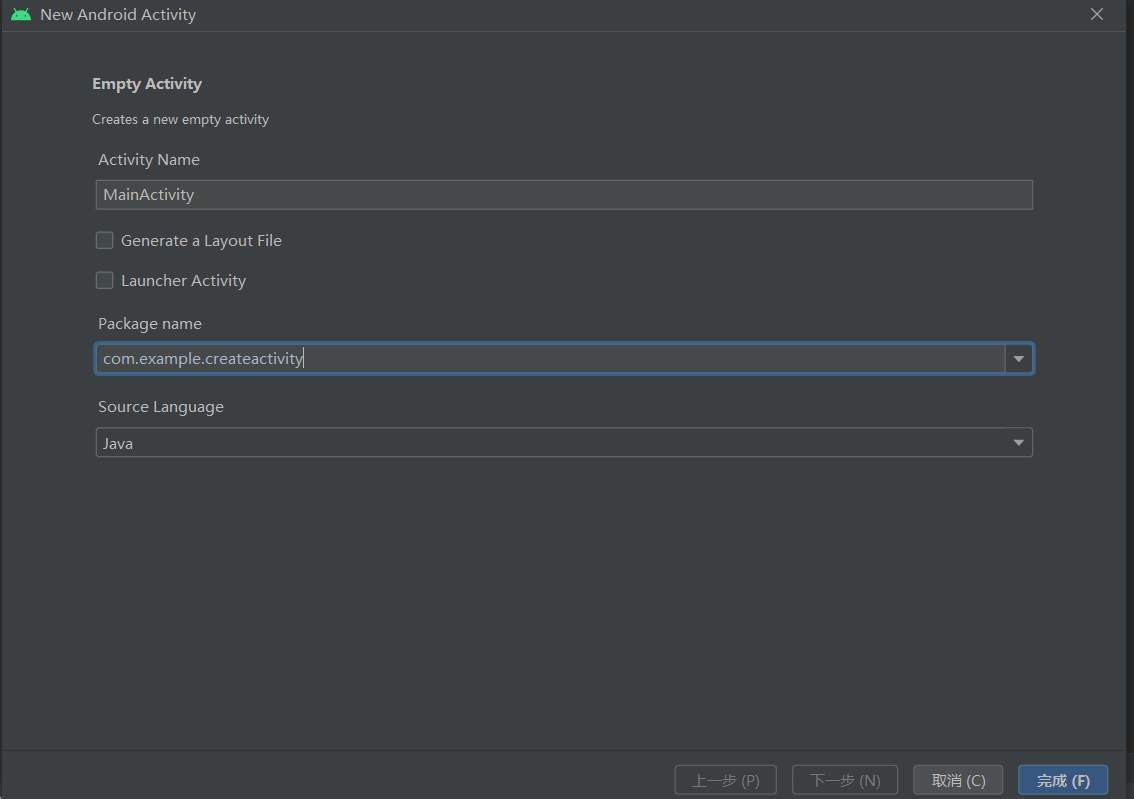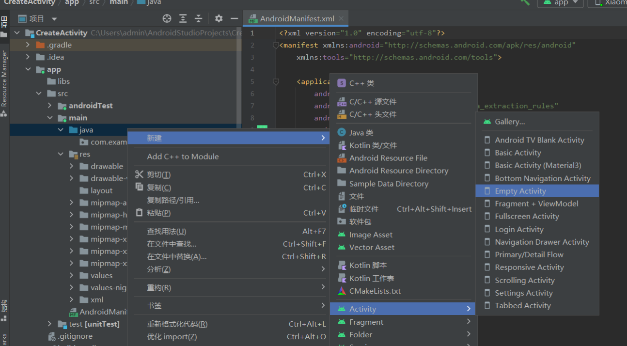 然后手动在app>src>main>java文件夹下新建一个空白Activity