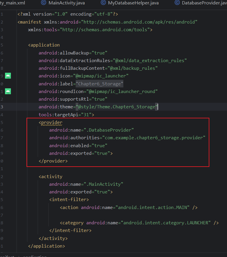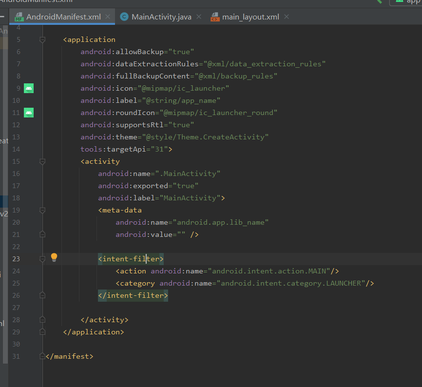 AndroidManifest.xml:这是你整个Android项目的配置文件,你在程序中定义的所有四大组件都需要在这个文件里注册,另外还可以在这个文件中给应用程序添加权限声明