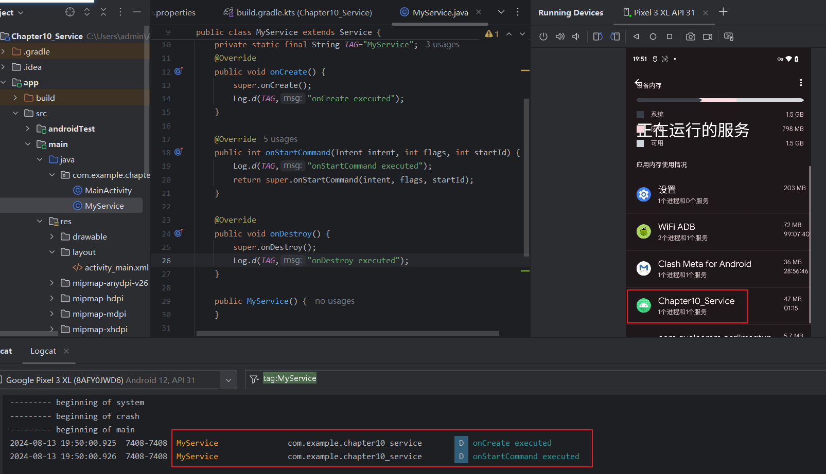服务(Service):无法看到,它会一直在后台运行,即使用户退出了应用,服务可以继续运行。