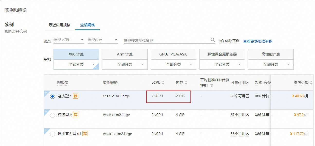 实例规格默认2核2G,如果搭建游戏服务器最低使用该配置,有条件建议内存4G+