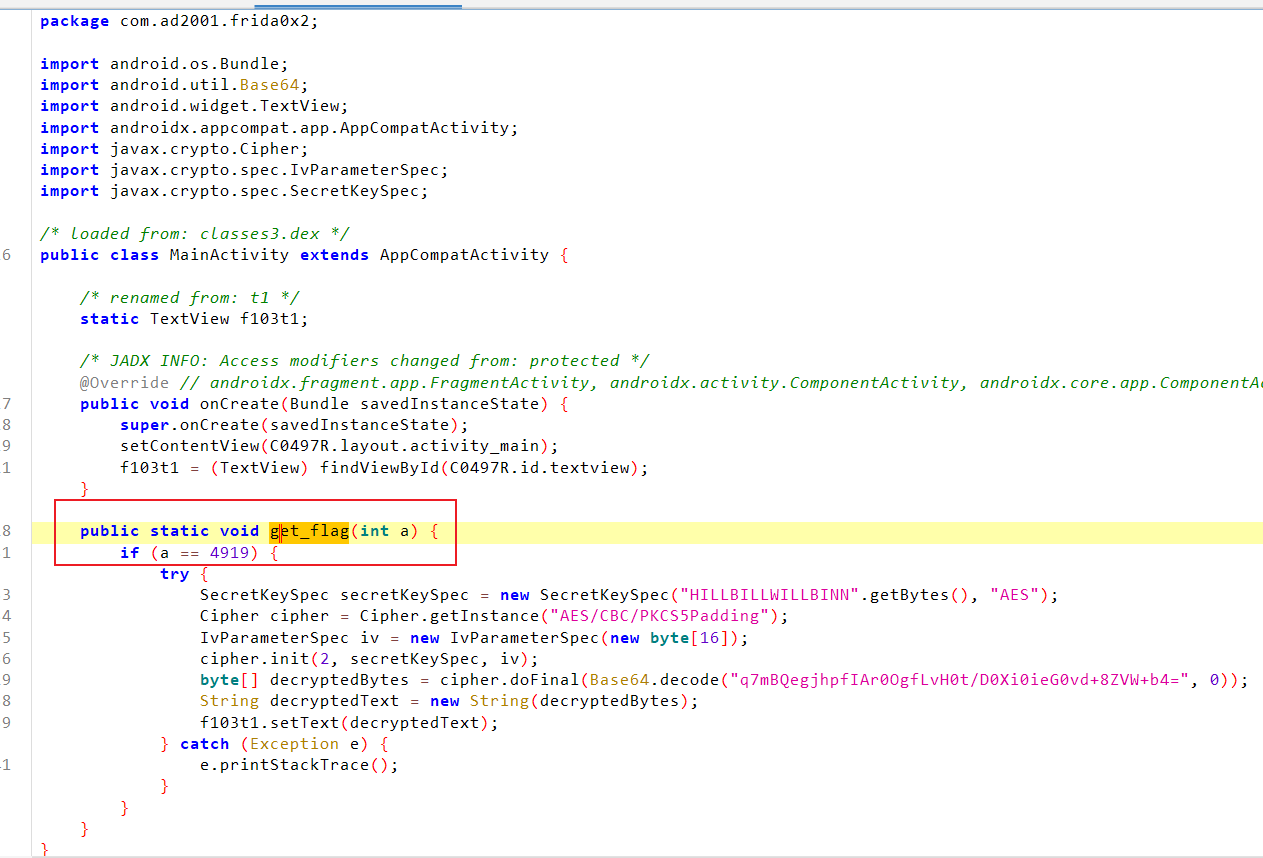 MainActivity的静态方法get_flag(),当参数a==4919时getflag